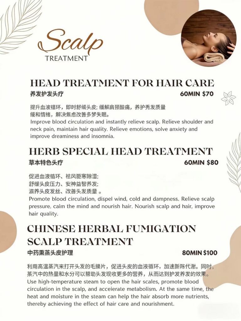 Our primary services include Chinese Scalp care, Thai Stretching, Deep Tissue Massage, Japanese Shiatsu, and soothing Aromatherapy spa treatments. We also offer Couples Massage and Combo Massage options for those who want to share the experience or enjoy a more comprehensive session.